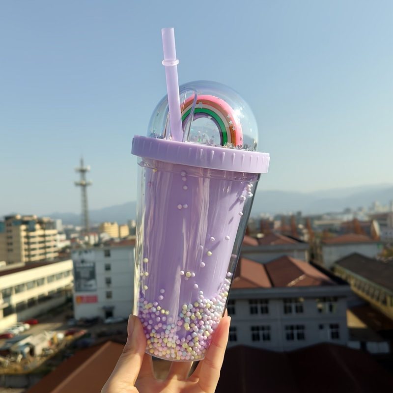 Unicorn 550ML Rainbow Layer Straw Glass (Mix/Random colour)